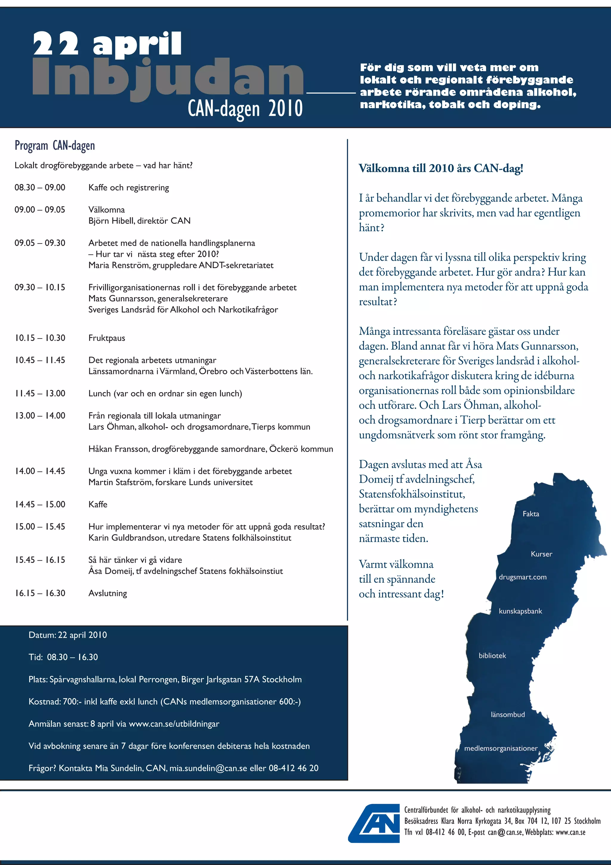 Lokalt drogförebyggande arbete – vad har hänt? Välkomna till 2010 års CAN-dag!
