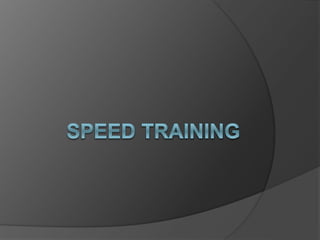 This document summarizes different training methods for developing power, speed, and agility. It examines resistance training, Olympic weightlifting, plyometrics, complex training, and integrating multiple methods. Studies comparing different training programs are discussed, generally finding that combining methods is most effective. Guidelines for speed training include techniques for different speed components. The document concludes by providing an example training program for a 100m sprinter that incorporates various strength, power, plyometric and speed development exercises across a training week.
