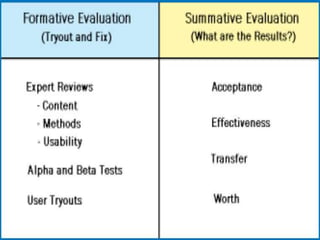 This document focuses on program evaluation, defining it as the systematic gathering and analysis of information to assess educational programs' effectiveness and improve curricula. It discusses various evaluation approaches, including product-oriented, process-oriented, and decision-facilitation models, emphasizing the significance of both quantitative and qualitative data in evaluation. Additionally, it addresses the importance of involving the school community and utilizing feedback from multiple stakeholders to enhance the overall educational process.