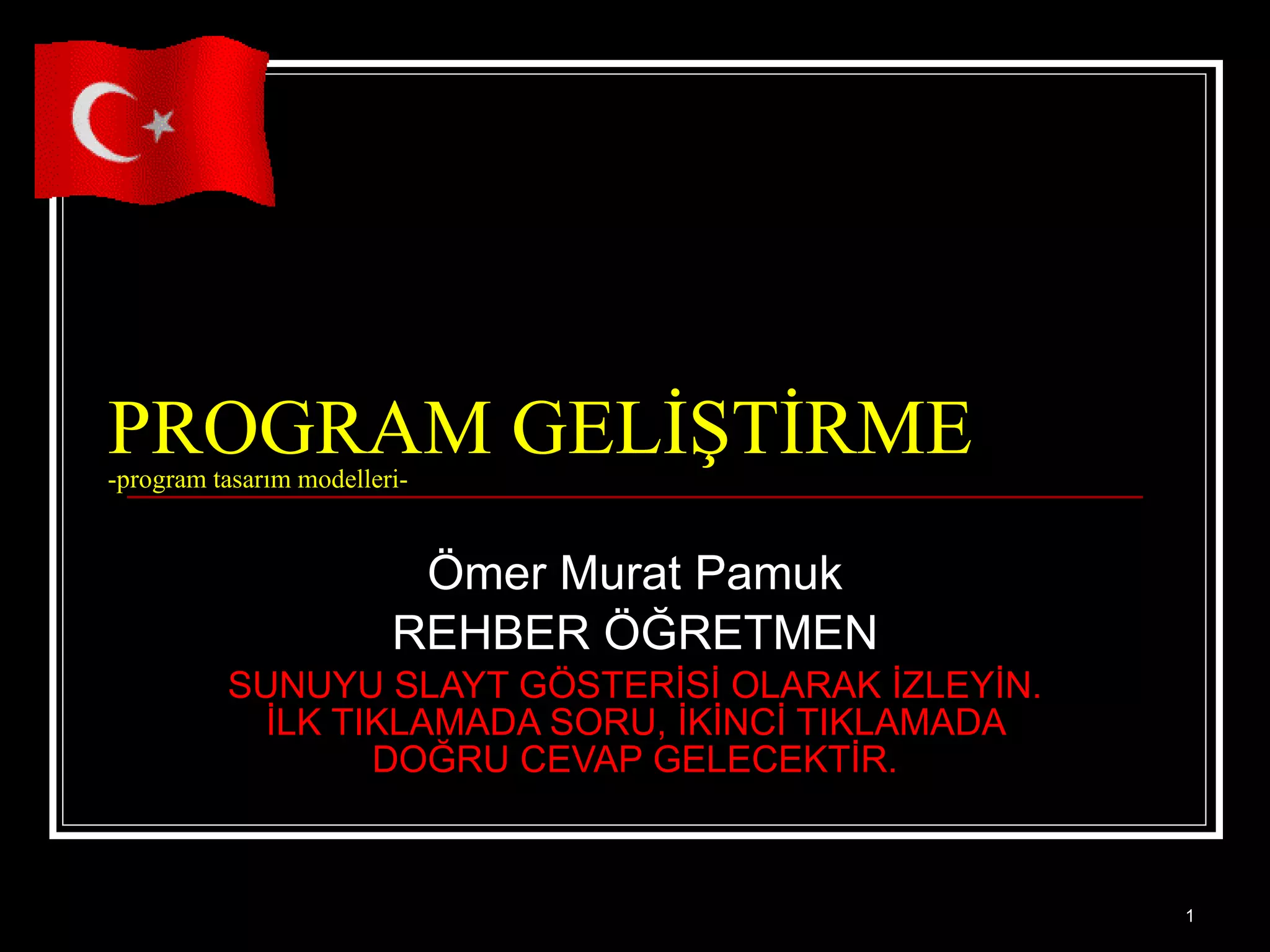 PROGRAM GELİŞTİRME -programtasarım modelleri- Ömer Murat Pamuk REHBER ÖĞRETMEN SUNUYU SLAYT GÖSTERİSİ OLARAK İZLEYİN. İLK TIKLAMADA SORU, İKİNCİ TIKLAMADA DOĞRU CEVAP GELECEKTİR.