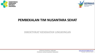 Dokumen ini membahas upaya peningkatan kesehatan lingkungan di Indonesia melalui berbagai intervensi dan pelayanan kesehatan lingkungan yang bertujuan untuk mengurangi penyakit akibat faktor risiko lingkungan. Terutama, dokumen menekankan peranan sanitasi yang baik, perilaku hidup bersih, dan akses terhadap air bersih dalam mencegah penyakit menular. Indikator kinerja untuk program kesehatan lingkungan juga diuraikan, menunjukkan target untuk peningkatan kesehatan masyarakat dari tahun 2020 hingga 2024.