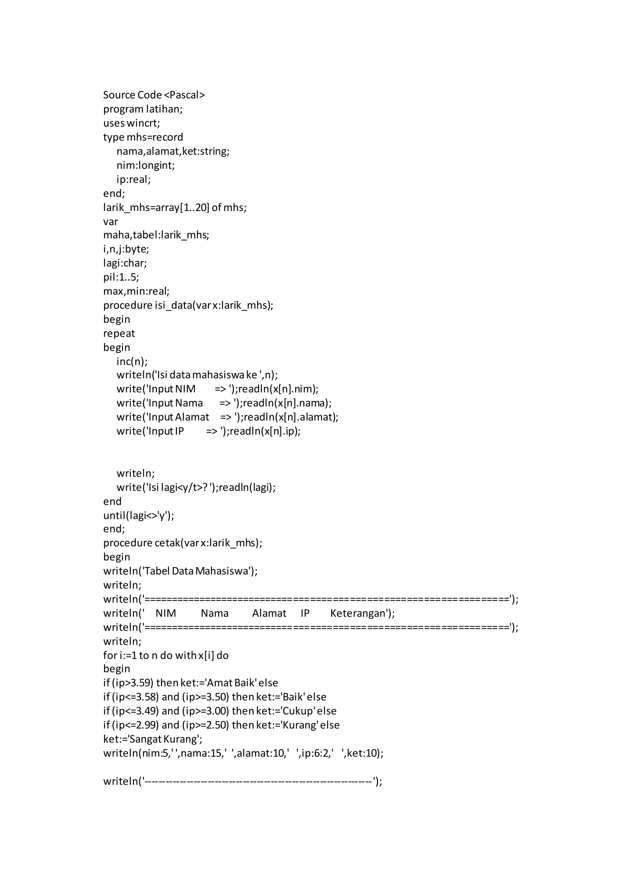 writeln('4.Mengurutkan data mahasiswa berdasarkan IP tertinggi');