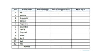 Program tahunan merupakan rencana penetapan alokasi waktu satu tahun pembelajaran untuk mencapai kompetensi inti dan dasar dalam kurikulum, yang berfungsi sebagai pedoman pengembangan program berikutnya seperti program semester, silabus, dan rencana pelaksanaan pembelajaran. Program tahunan disusun dengan menghitung jumlah minggu dan jam belajar efektif selama setahun berdasarkan kalender pendidikan.