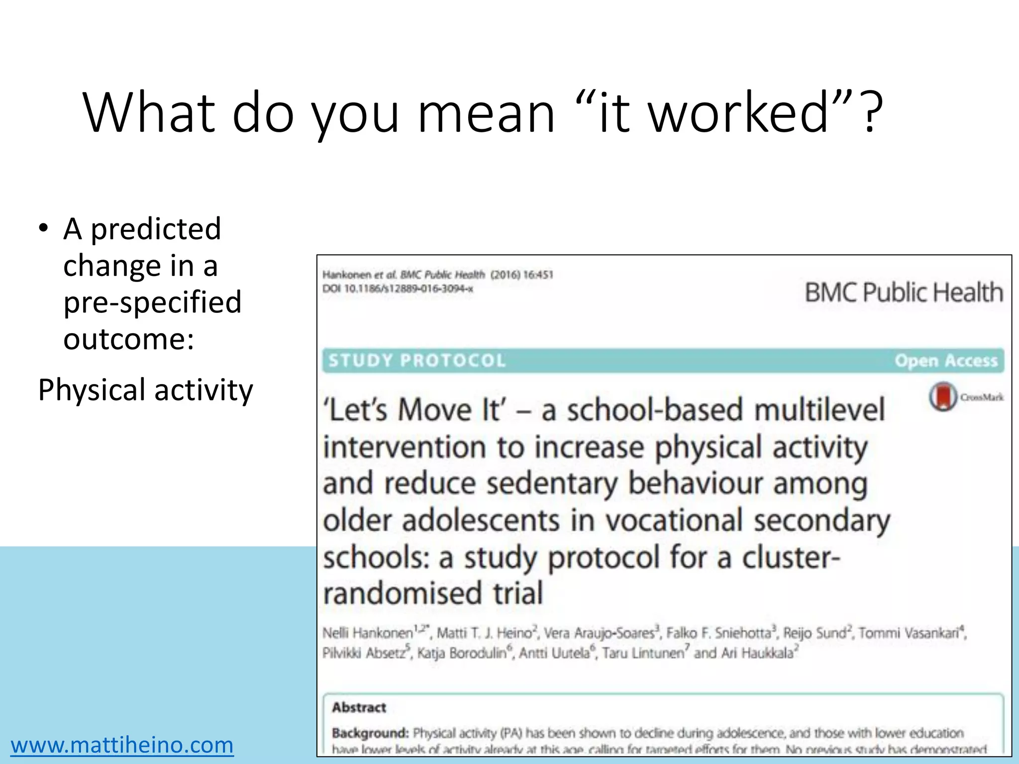 The document discusses challenges in evaluating the mechanisms and theories behind how interventions and programs work. It notes that while an intervention may predict an outcome like increased physical activity, understanding how and why it worked requires testing the underlying program theory against alternatives. Evaluating mechanisms of change is difficult due to sample size limitations and the complexity of interventions. Overfitting theories to limited data is also a problem. The document raises open questions about whether program theories can be treated like other scientific theories and subjected to replication, falsification, and cross-validation, and how best to study mechanisms of action in complex, real-world interventions.