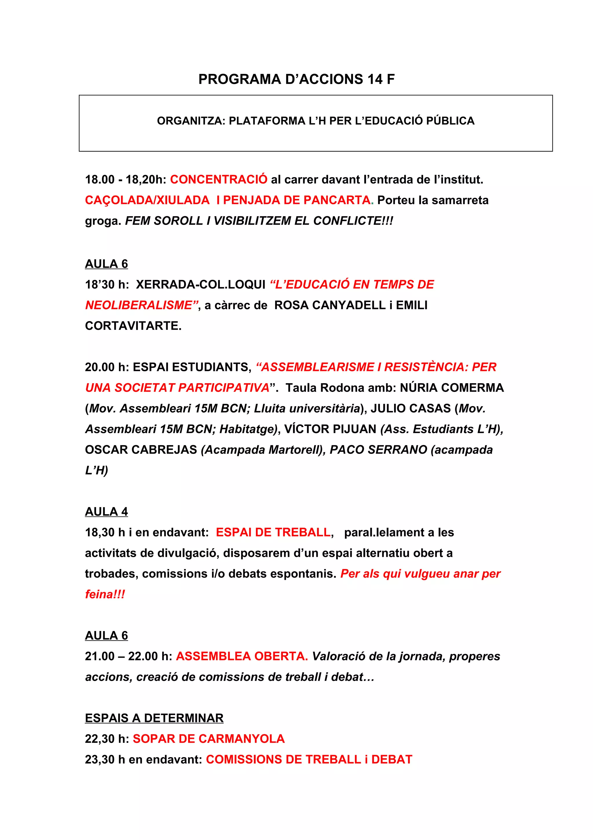 Manifest de la setmana de lluita i manifestació convocades per l’Assemblea de... PDF