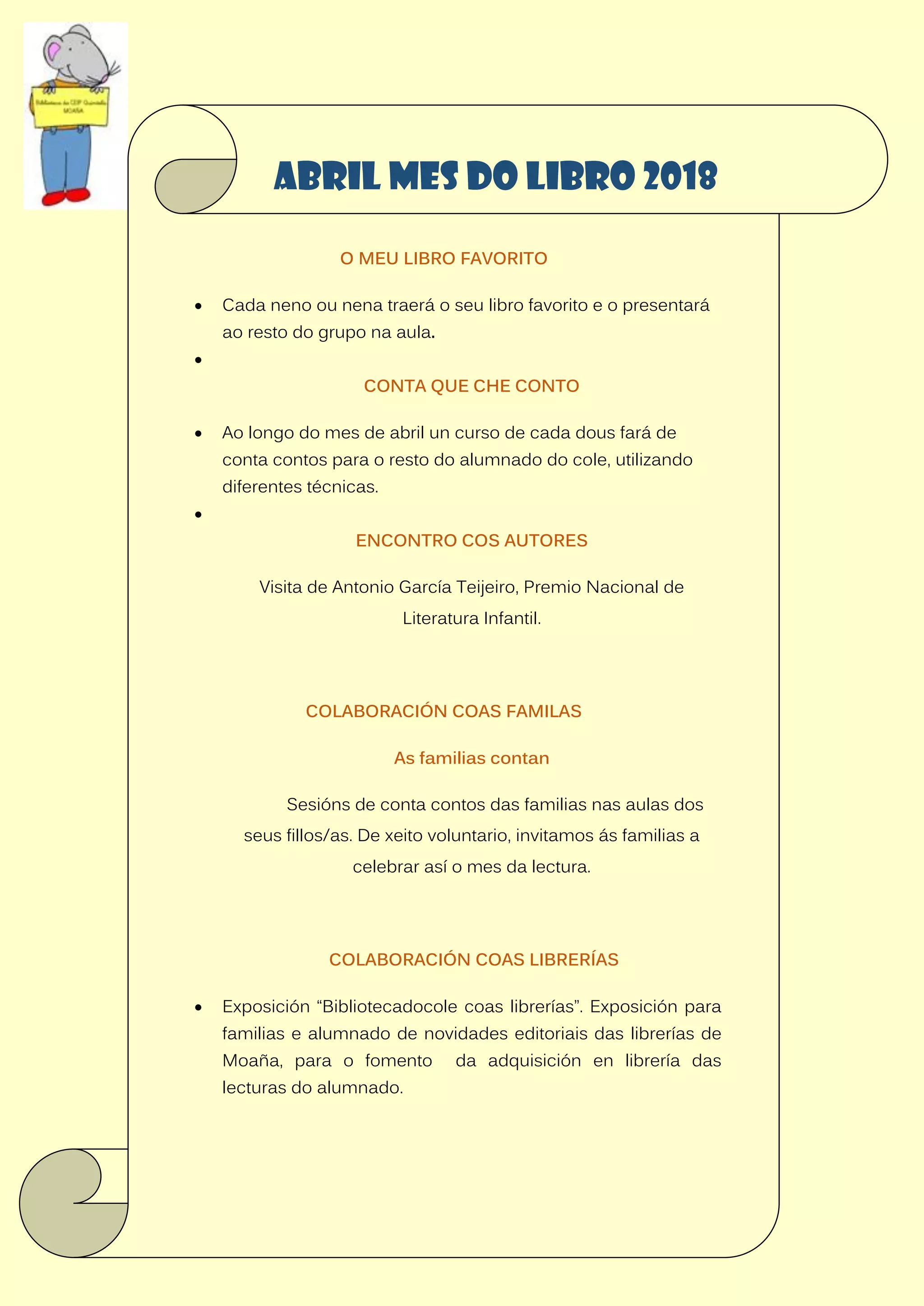 colexio: neno/as e nais para falar das súas lecturas favoritas.