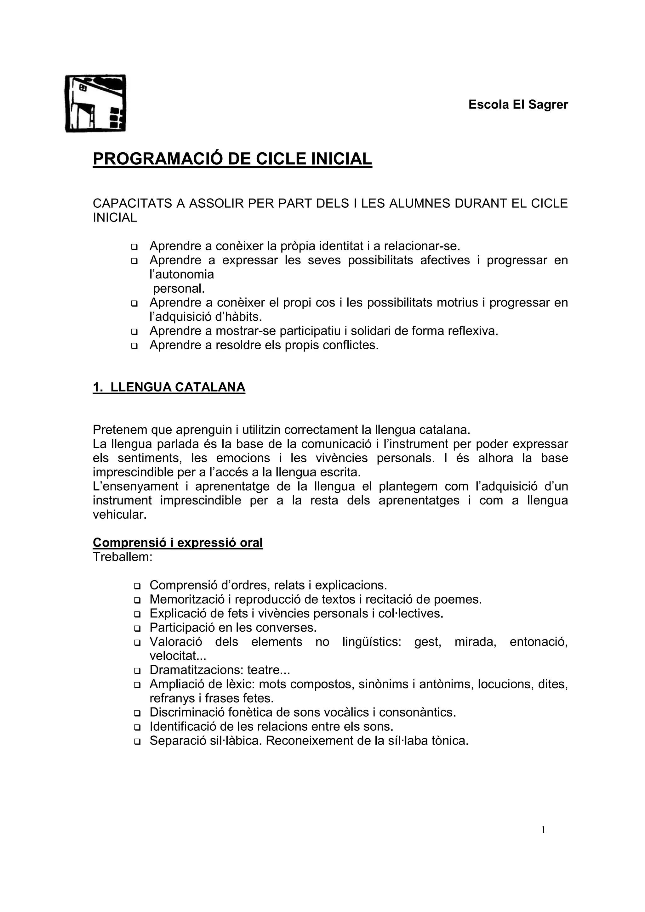 motivadora donant prioritat a l’ús oral de la llengua i iniciant l’aprenentatge a nivell