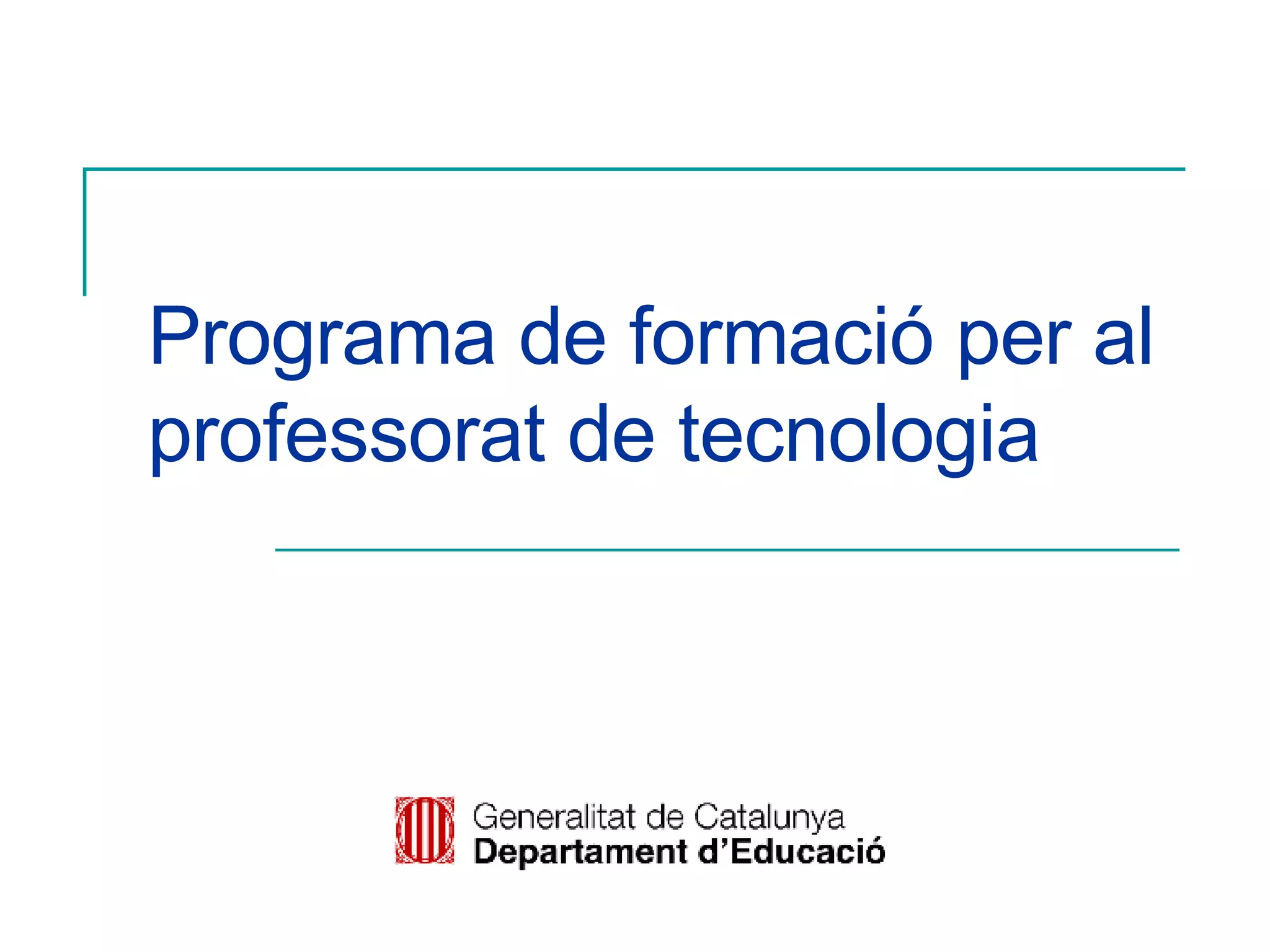 Continguts El modelde millora professional amb la pràctica reflexiva. Estratègies per a la dinamització i gestió del treball a l’aula. El procés tecnològic com a eix vertebrador de la formació en pràctica reflexiva. El nou currículum de Tecnologies. Les TIC com a suport a la comunicació entre professionals.