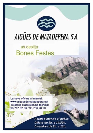 l’Ajuntament de Matadepera i al taulell d’anuncis del Casal de Cultura i del Casal de la Gent