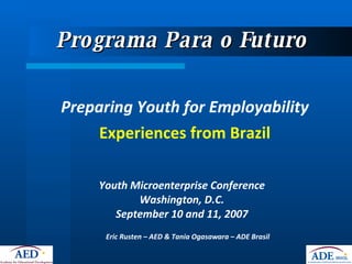 The document summarizes a program in Brazil called Programa Para o Futuro (PPF) that aims to improve employability for disadvantaged youth. Some key points: