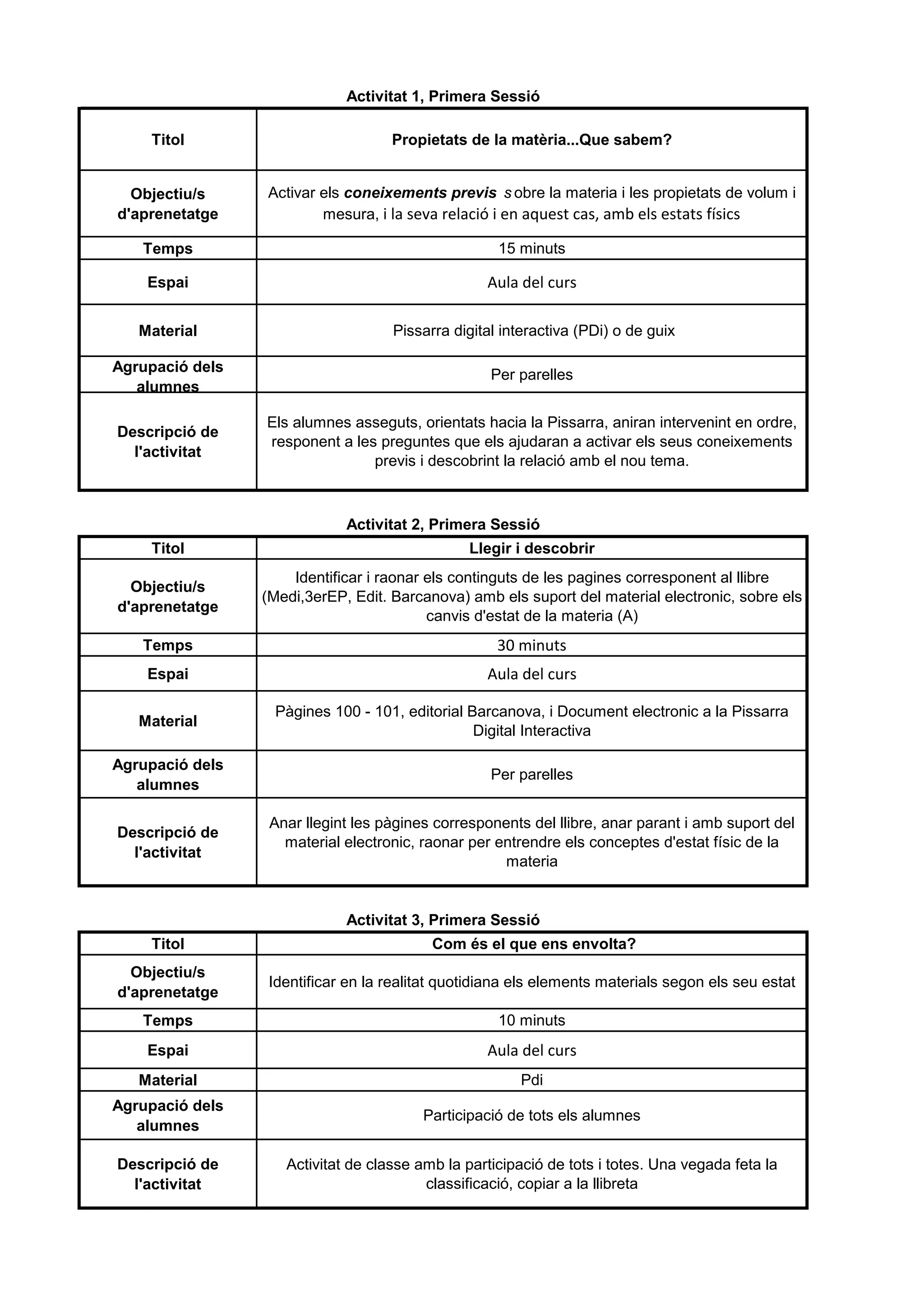 Objectiu/s Activar els coneixements previs s obre la materia i les propietats de volum i