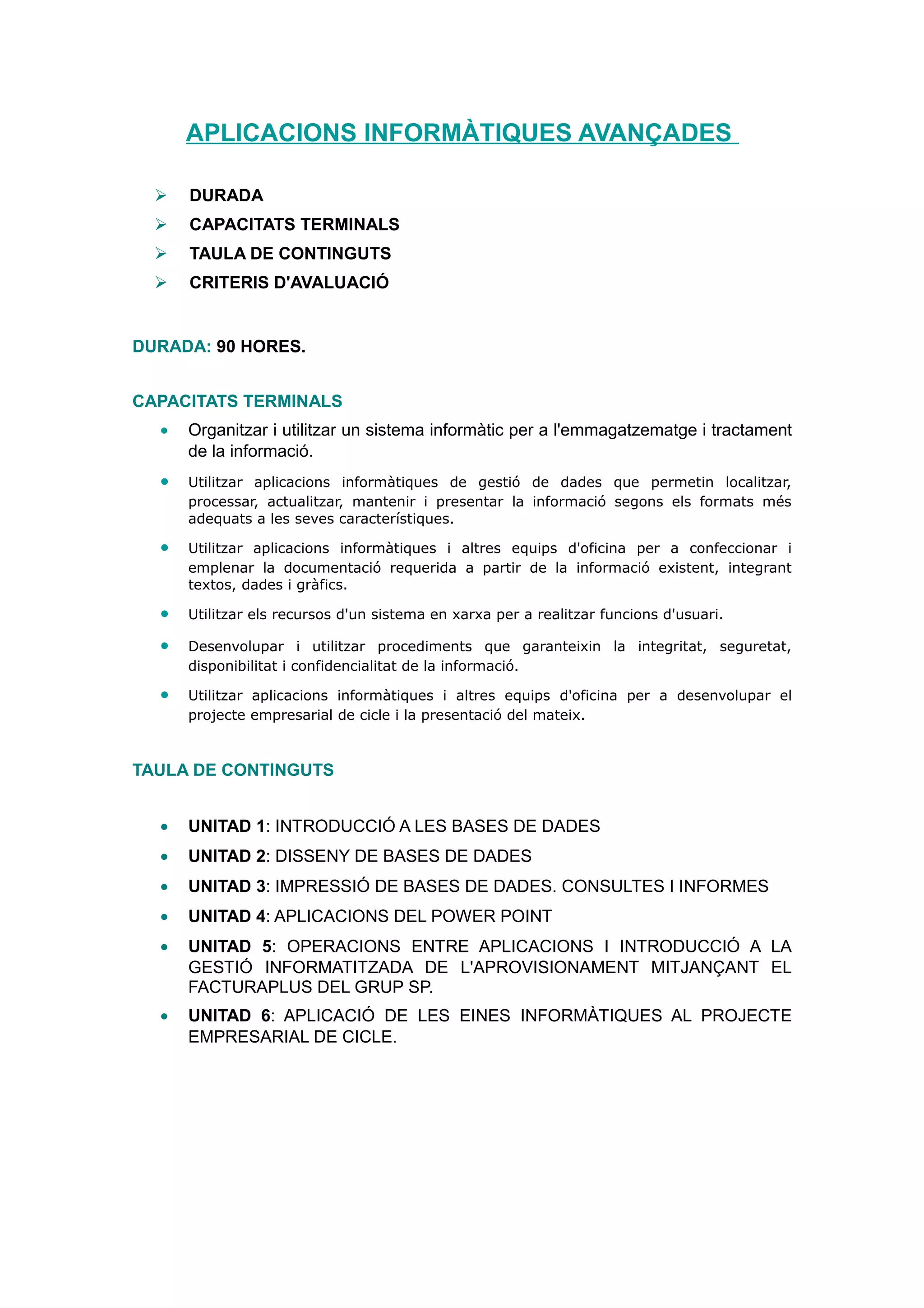APLICACIONS INFORMÀTIQUES AVANÇADES