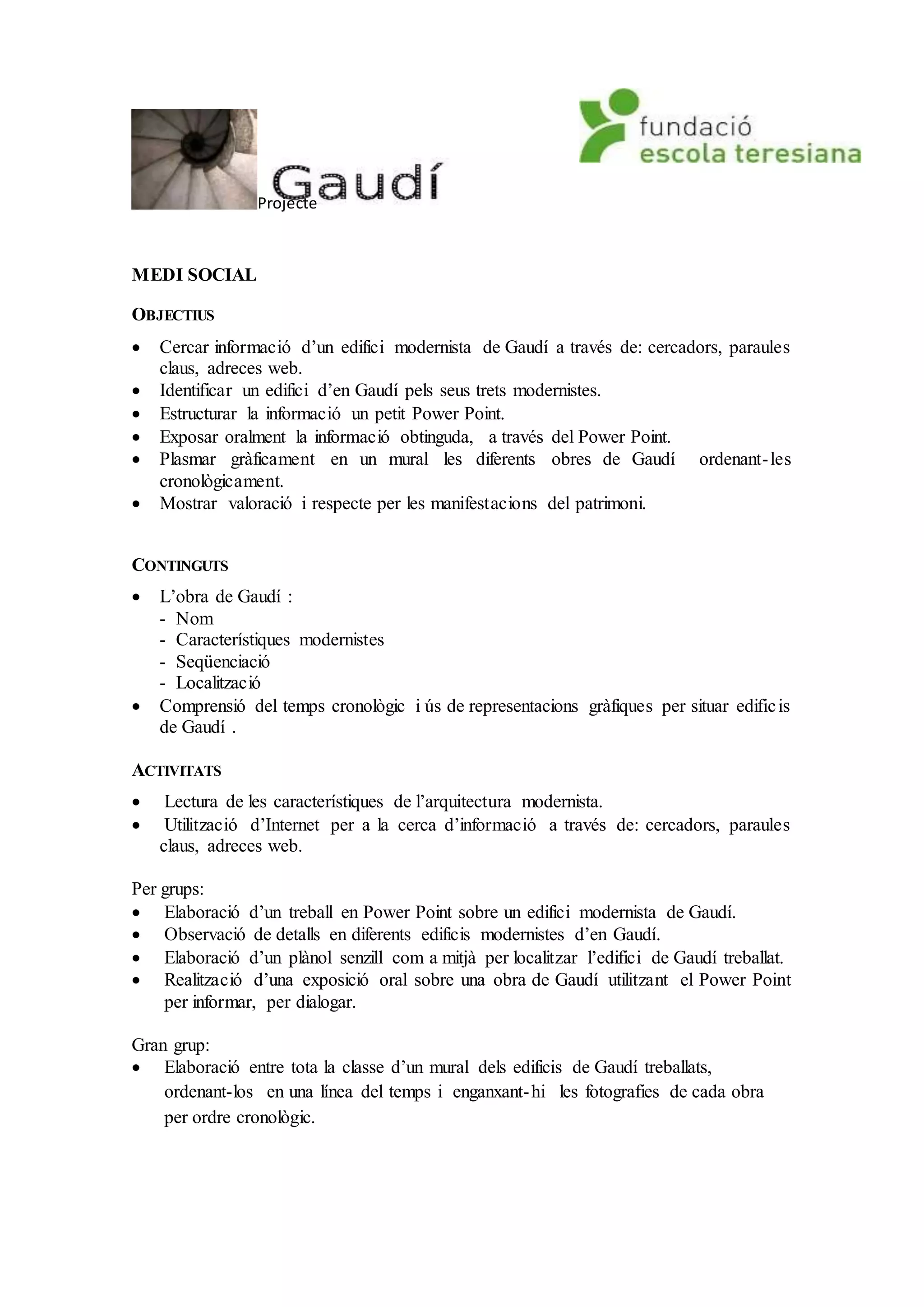 Elaboració d’un treball en Power Point sobre un edifici modernista de Gaudí.