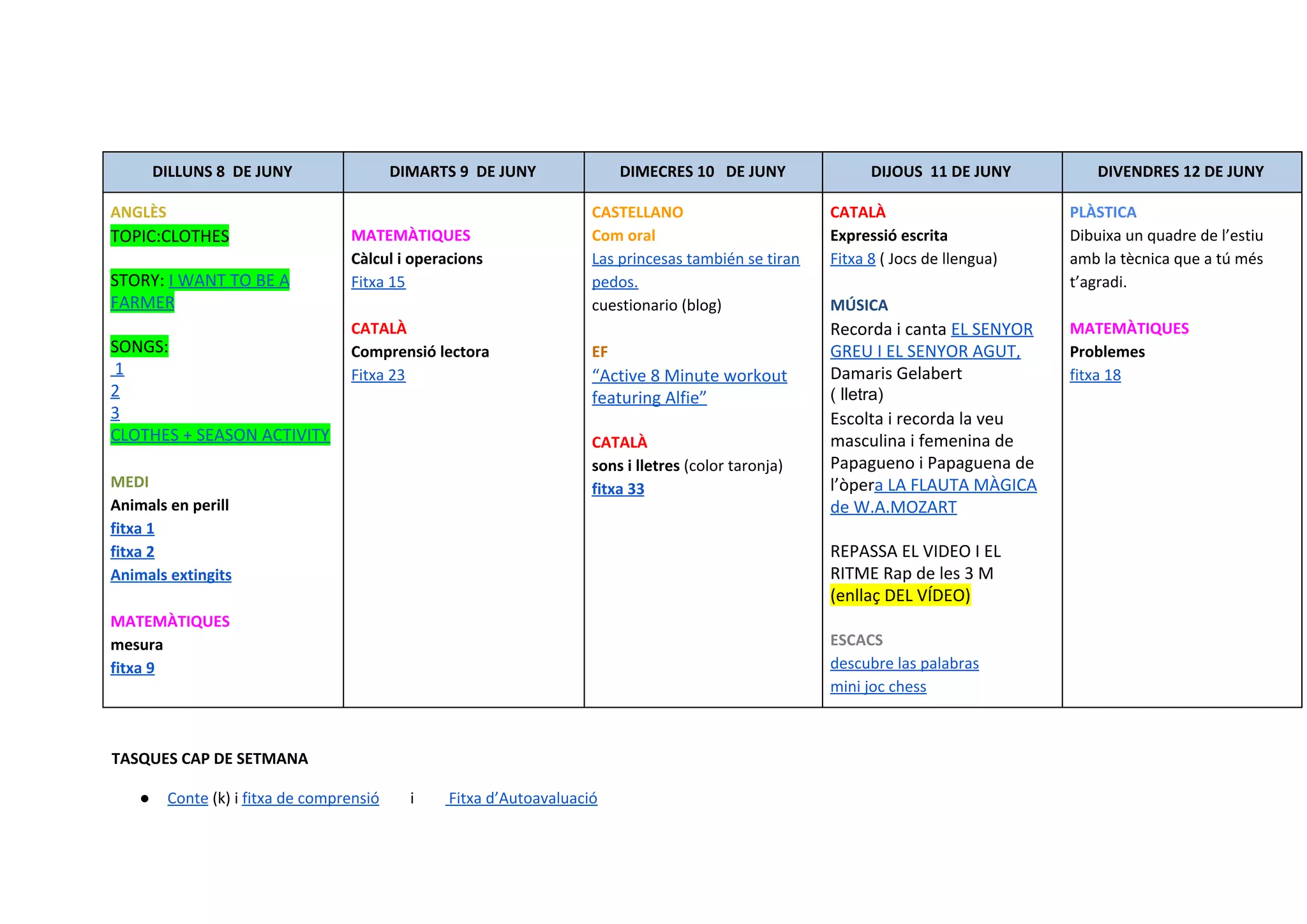 DILLUNS 8 DEJUNY DIMARTS 9 DE JUNY DIMECRES 10 DE JUNY DIJOUS 11 DE JUNY DIVENDRES 12 DE JUNY
