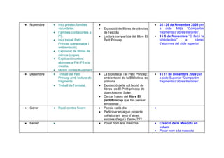 • Novembre • Inici préstec famílies • • 24 i 26 de Novembre 2009 per