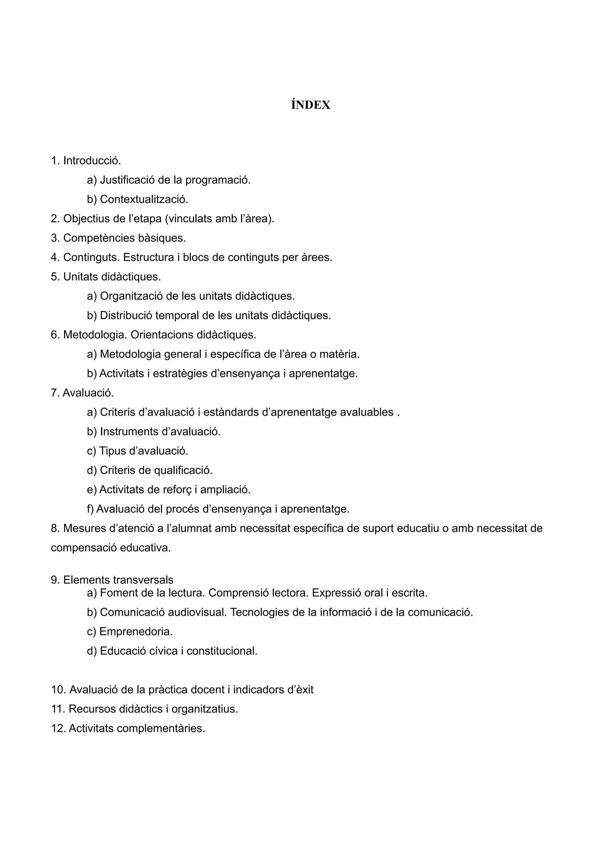 4. Continguts. Estructura i blocs de continguts per àrees.