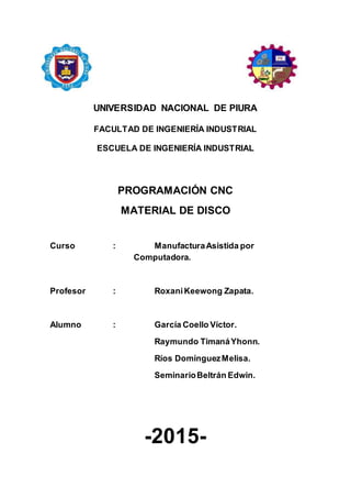 Programacion cnc material de disco 1. UNIVERSIDAD NACIONAL DE PIURA