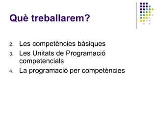 Què treballarem? Lescompetències bàsiques Les Unitats de Programació competencials La programació per competències