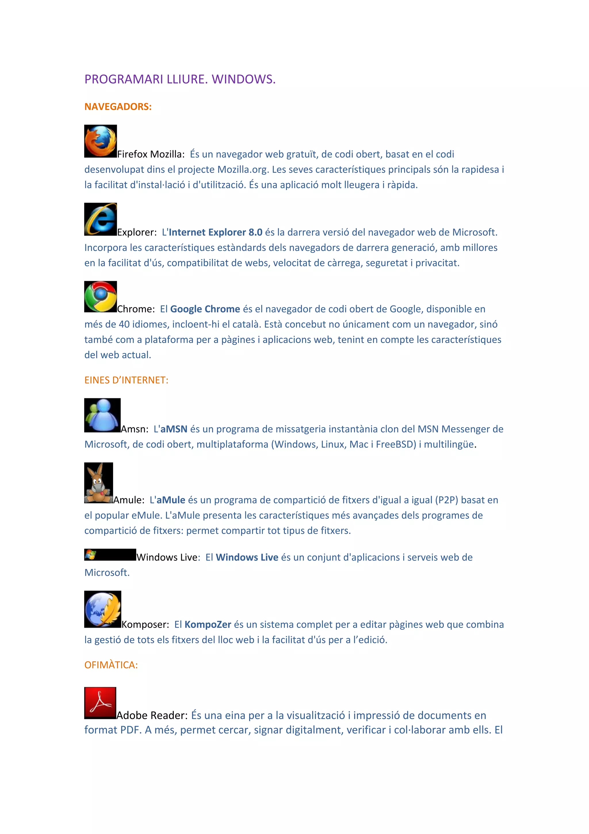 PROGRAMARI LLIURE. WINDOWS.