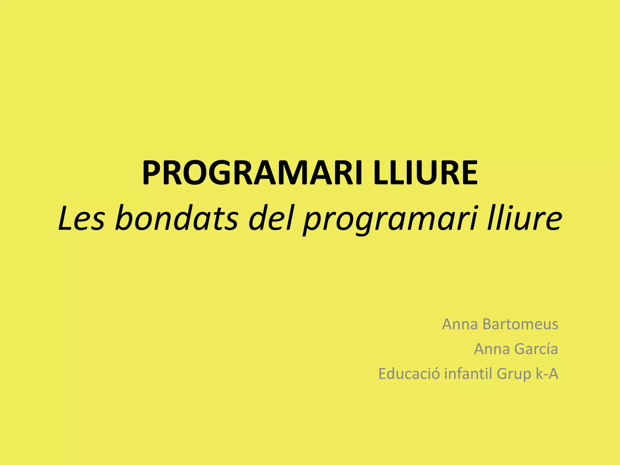 Beneficisde la llibertatd’úsdel programariLa pirateria o l’ús indegut perden sentit.LegalitatNo es poden discriminar tipusd’ús ni tipusd’usuaris.UniversalitatTesteigEl programariresultantésmésconsistent.AvaluacióFacilitatper a provar diversos programes senserestriccions.