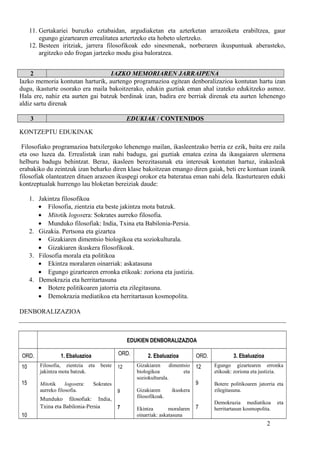 filosofiak olanteatzen dituen arazoen ikuspegi orokor eta bateratua eman nahi dela. Ikasturtearen eduki