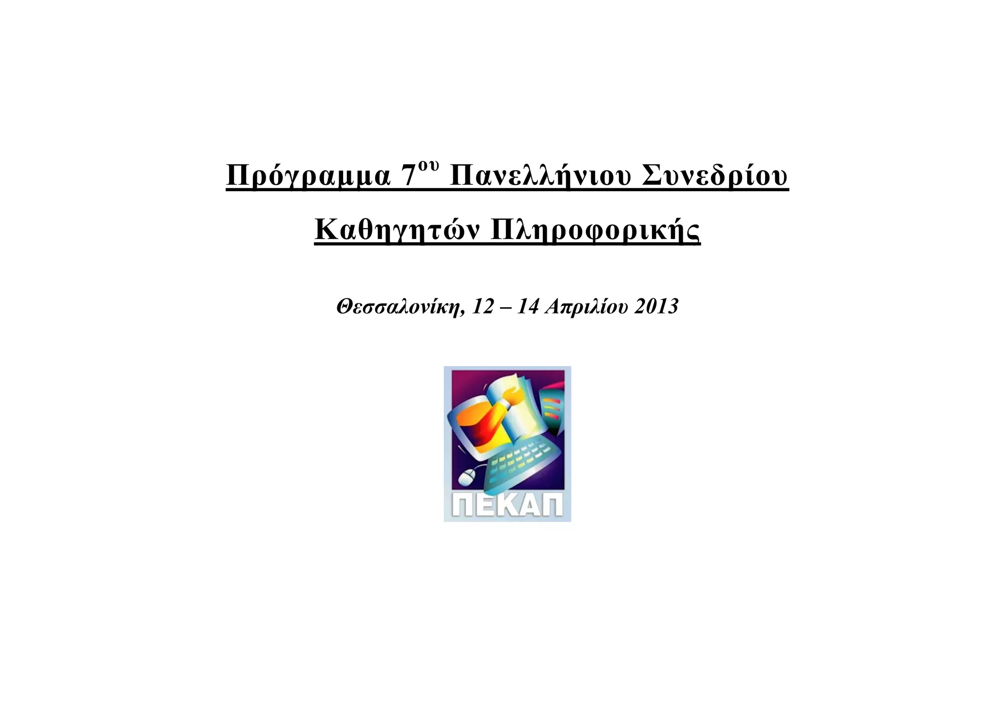 Φέτος η Π.Ε.ΚΑ.Π. και το Παράρτημα Π.Ε.ΚΑ.Π. Θεσσαλονίκης διοργανώνουν σε συνεργασία με το Πανεπιστήμιο Μακεδονίας (Τμήμα Εφαρμοσμένης