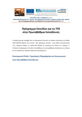 αιώνα) – Νέο Πρόγραμμα Σπουδών , Οριζόντια Πράξη» MIS: 295450