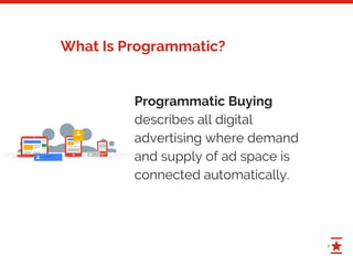The document discusses programmatic advertising, which automates the buying and selling of ad space in real-time to enhance advertising efficiency. It outlines the evolution of ad technology and the significance of data signals, targeting, and performance tracking in optimizing advertising strategies. The text also addresses challenges in the programmatic landscape, such as ad fraud and the increasing use of ad-blockers.