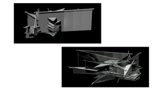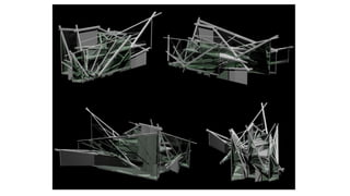 The document discusses program generated architecture and describes an experiment using it. It begins by discussing generative design and how computer-architect interaction has shifted from productivity tools to design exploration. It then details the inspiration, process, and development of a framework for the experiment. Key steps included defining descriptors, formalizing code parts, evaluating output, and adding complexity. The output generated structures and forms that emerged from applying architectural conditions and refinements over multiple generations. The goal was to use program generation as a design tool for exploration rather than purely random generation.