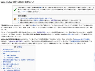Wikipediaの利用はフリーで、誰でも編集が 可能です • Wikipediaには行動規範があります • 上の4つの原則の他には、Wikipediaには、 確固としたルールはありません
