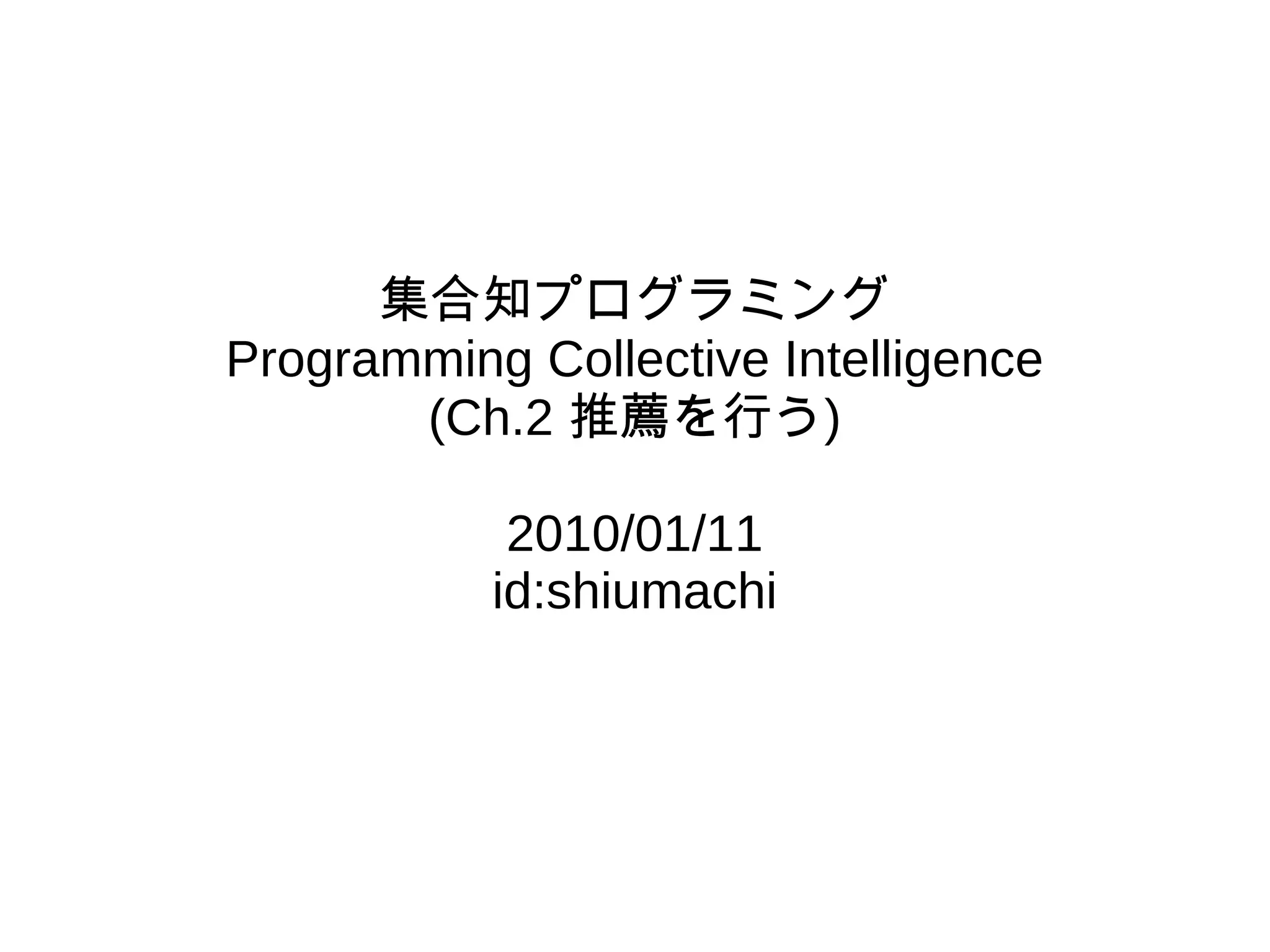 Intelligence (Ch.2 推薦を行う) 2010/01/11 id:shiumachi