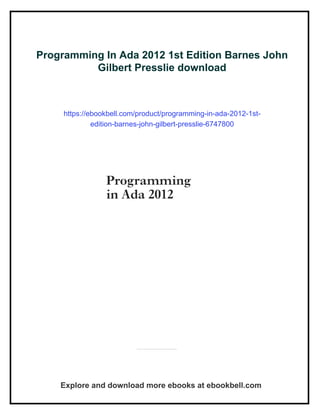 Programming In Ada 2012 1st Edition Barnes John Gilbert Presslie