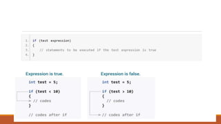 C is a programming language developed in 1972 by Dennis Ritchie at Bell Labs. It is a structured programming language that is highly portable and supports functions. A C program consists of functions, with a main function that is the program entry point. Input/output in C uses predefined functions like printf() and scanf(). A C program is compiled into an executable file that can run on many machine architectures. The document then discusses C program structure, data types, libraries, variables, keywords, operators, and control flow statements like if/else, switch, while, do-while and for loops.