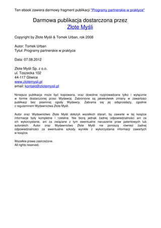 Ten ebook zawieradarmowy fragment publikacji "Programy partnerskie w praktyce"