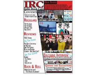 1) The document describes the process of designing the contents page for a magazine, including adding images, text, colors, and layout elements.