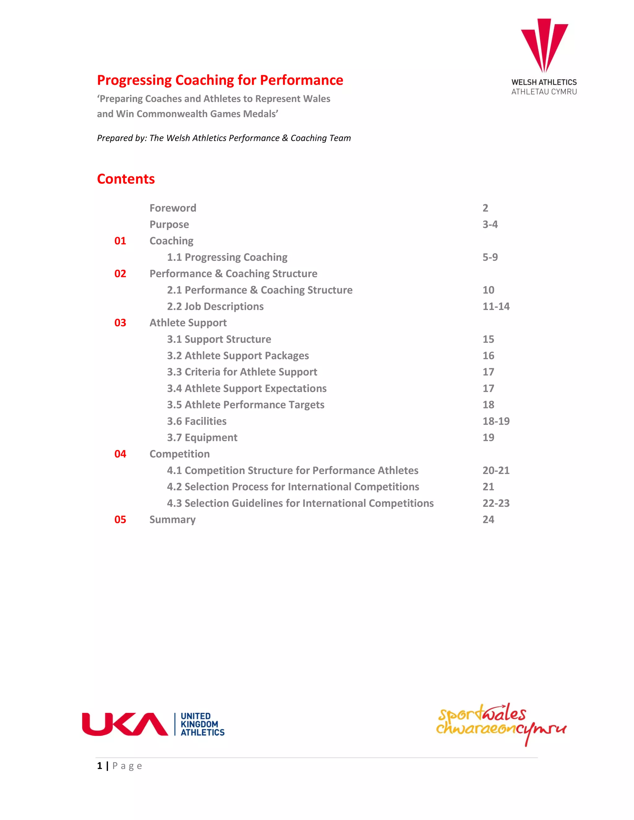 The Welsh Athletics Progressing Coaching for Performance plan outlines two coaching development