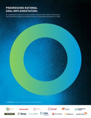 This document provides a summary and analysis of voluntary national review (VNR) reports submitted to the United Nations in 2020 on progress implementing the 2030 Agenda for Sustainable Development. Some key findings include:
