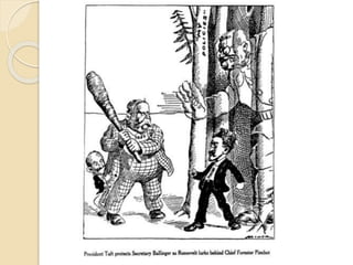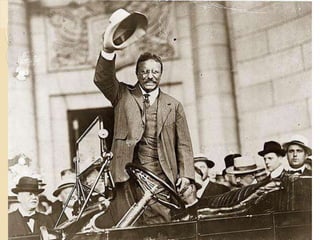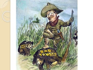 President Theodore Roosevelt implemented a "Square Deal" policy with three main goals: controlling corporations through antitrust laws, protecting consumers, and conserving natural resources. His administration filed numerous antitrust lawsuits, passed laws regulating the food and drug industries and empowering regulatory agencies, and set aside hundreds of millions of acres of federal land for conservation. Overall, Roosevelt took an active approach to expanding the federal government's role in regulating businesses and protecting citizens.