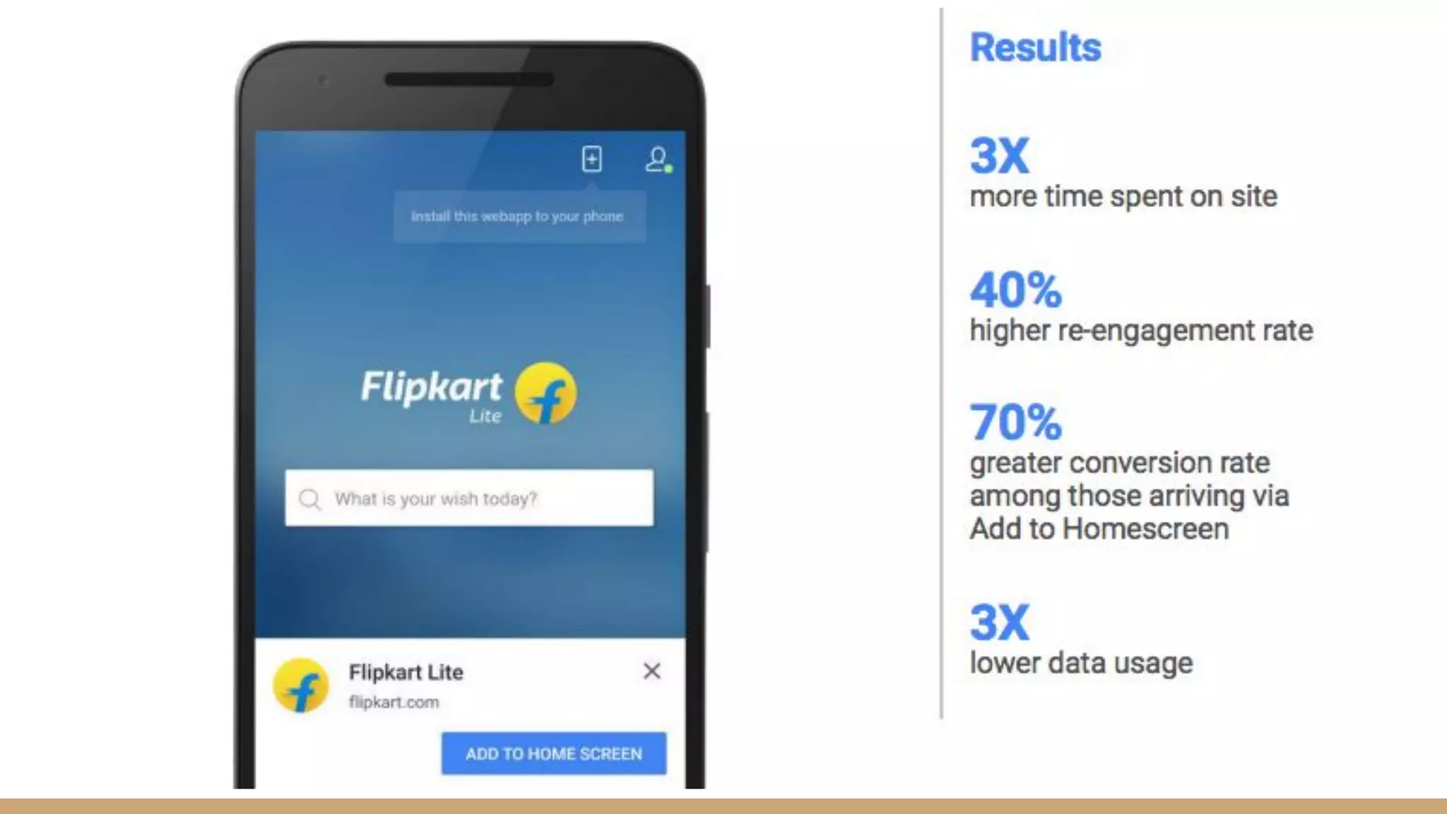 Progressive web applications (PWAs) are web-based applications that are built using modern web capabilities and provide app-like experiences to users. PWAs use service workers, manifest files, and the app shell model to deliver fast, reliable and engaging experiences to users regardless of network conditions. Major companies like Flipkart and BookMyShow have seen success adopting PWAs, with Flipkart's PWA increasing user engagement and conversion rates while reducing data usage compared to their previous mobile website. As browser and platform support for PWAs grows, more organizations are expected to adopt the technology to build applications.