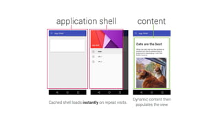 The document discusses best practices for startups developing progressive web apps (PWAs), emphasizing the importance of team dynamics, product quality, user engagement, and rapid execution. It highlights the advantages of PWAs over native applications, including home screen access, push notifications, and offline capabilities, which enhance user experience and engagement. Case studies show significant improvements in user retention and spending through effective use of PWAs.