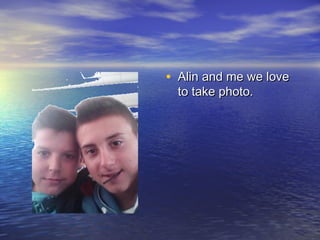 The document discusses the hobbies and activities of several friends during their breaks. Alin and Mihai enjoy taking photos together, while Florentin is passionate about football and never stops playing. Mihai listens to music five times a day, Alin often does homework during breaks, and David likes to run on the stairs. The friends sign off saying they will be best friends forever.