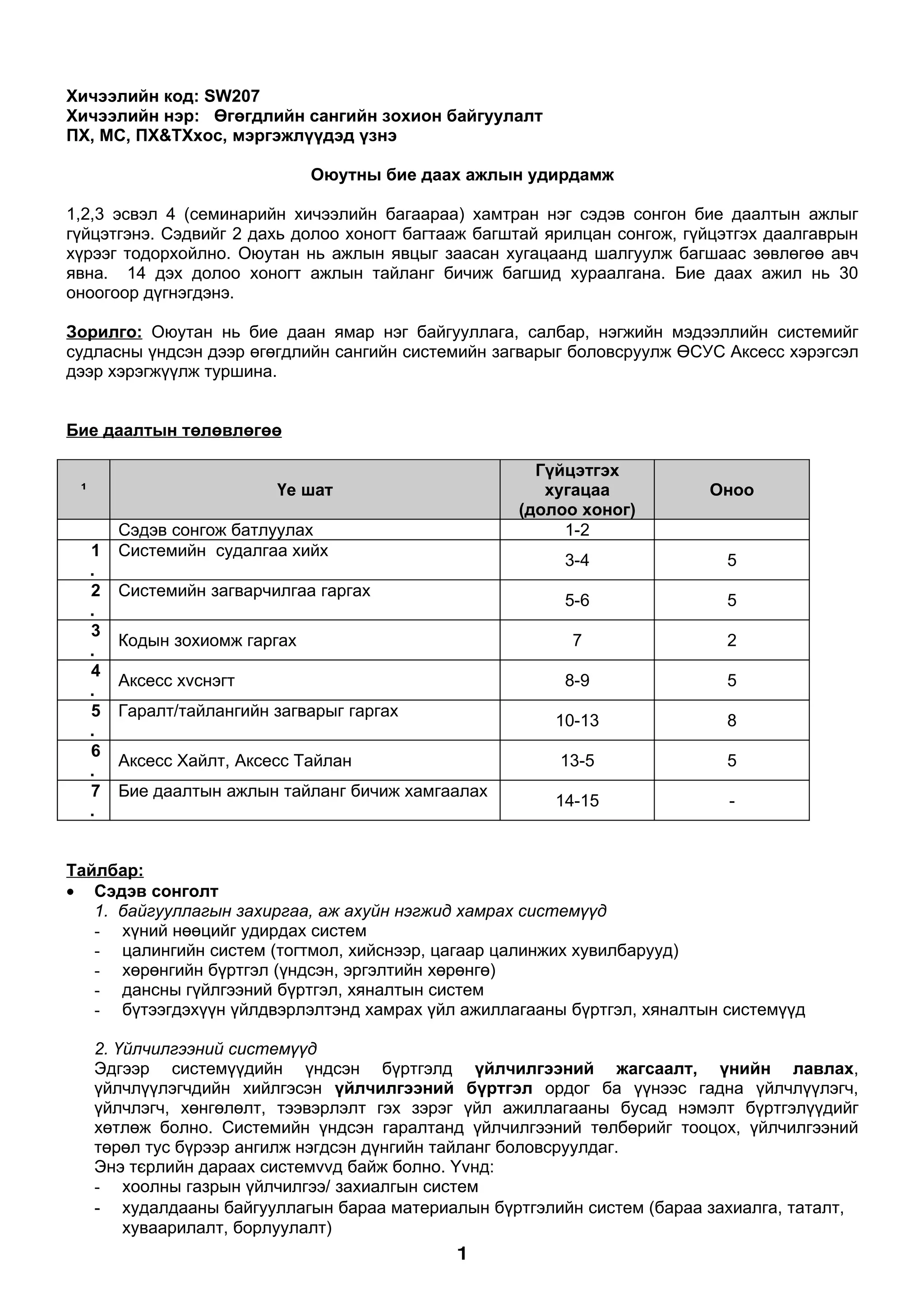 • Бие даалт 7. Бие даалтын ажлын тайланг бичиж хамгаалах