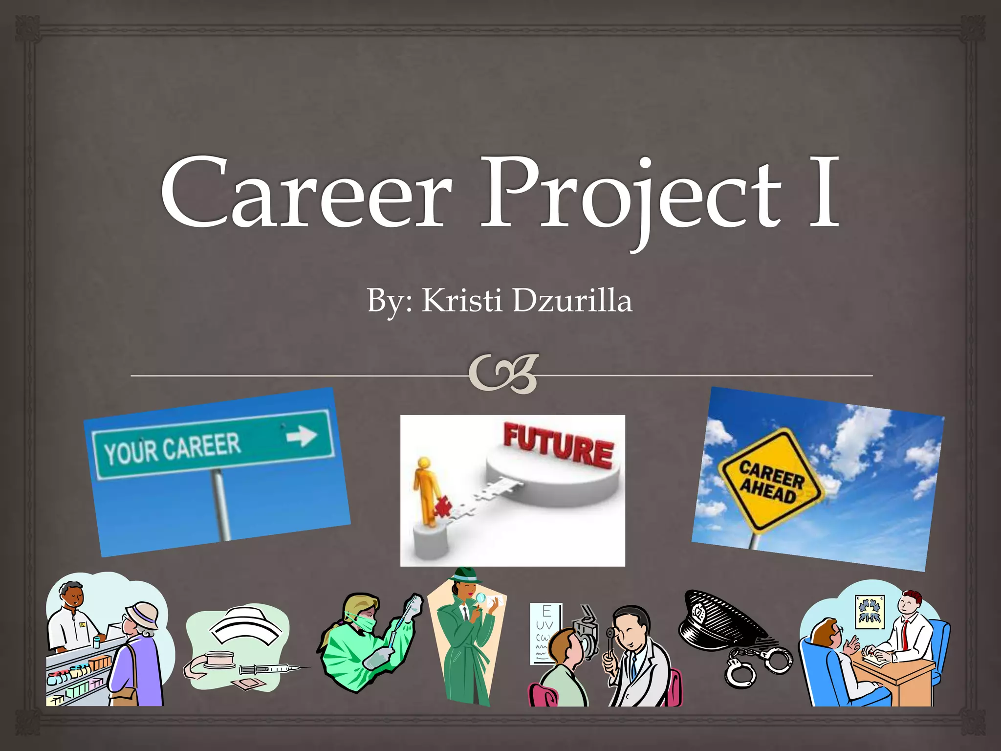 The document provides information about Kristi Dzurilla, including her lifestyle choices, learning style, career clusters, Holland Code results, and reflections on several potential career paths. It indicates that she is a visual learner who prefers to work independently and with others. Her top career clusters are law, health science, and education. Her Holland Code indicates interests in investigative, social, and conventional careers. She provides reflections on careers in pharmacy, criminal investigation, police detective, school psychology, optometry, and nurse practitioner, finding potential fits based on her personality and skills.