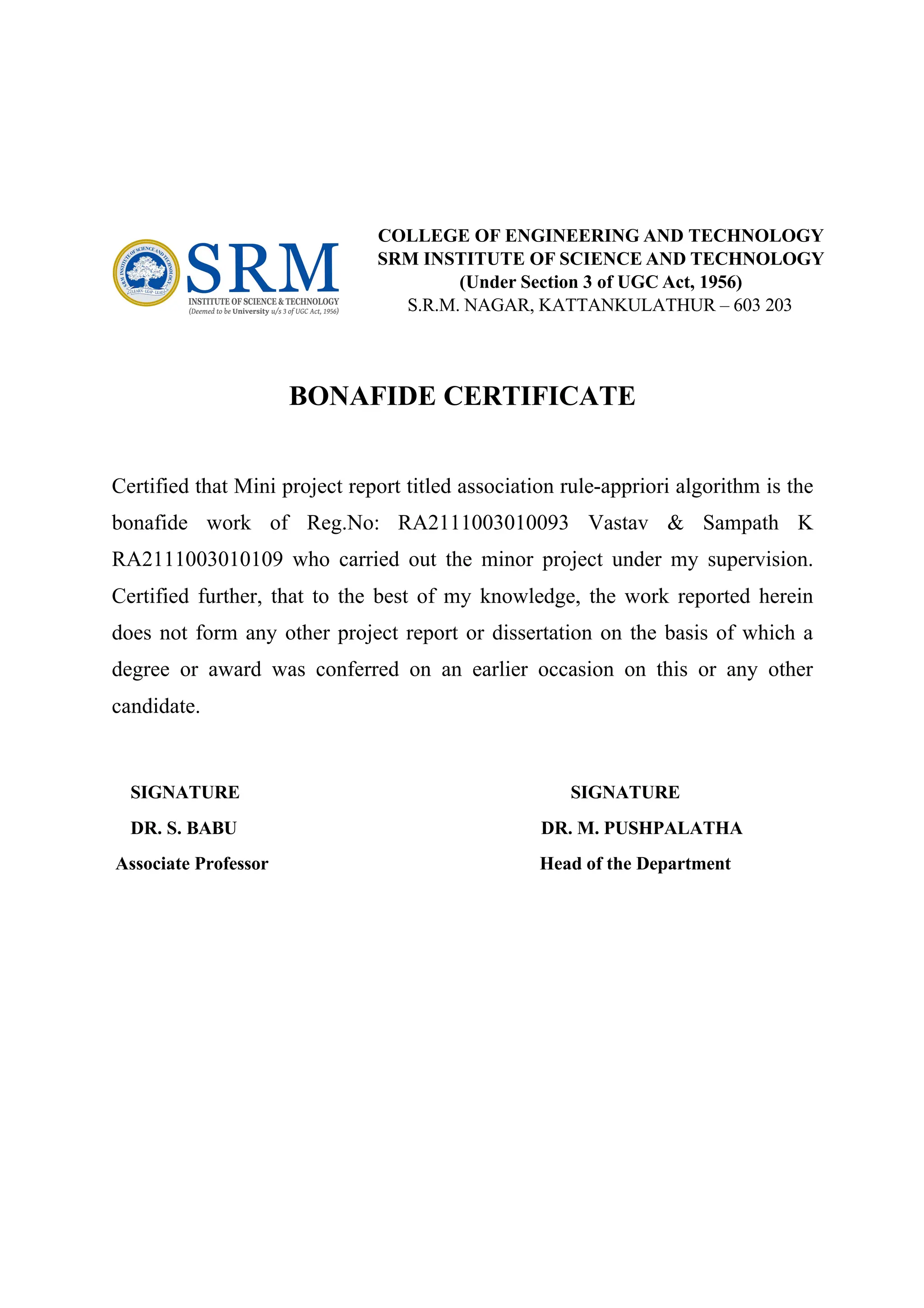 This project report focuses on the association rule-apriori algorithm, a significant method in data mining for discovering relationships among items in large datasets. It provides an overview of the algorithm's principles, optimization techniques, implementations, and its applications in various domains like retail and healthcare. The report includes detailed discussions on support, confidence, and lift metrics, along with challenges and future directions in the field of association rule mining.