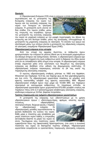 Τρόπος παραγωγής και τμήματα υδροηλεκτρικών εργοστασίων.........σελ. 2