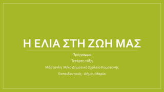 Κατά τη διάρκεια της σχ. χρονιάς 2014-2015, η τετάρτη τάξη του μειονοτικού σχολείου Μάστανλη Κομοτηνής με την εκπαιδευτικό Δήμου Μαρία, δούλεψαν διαθεματικά και μέσα από την πλατφόρμα του ευρωπαικού προγράμματος etwinning το θέμα "Η ελιά στη ζωή μας".