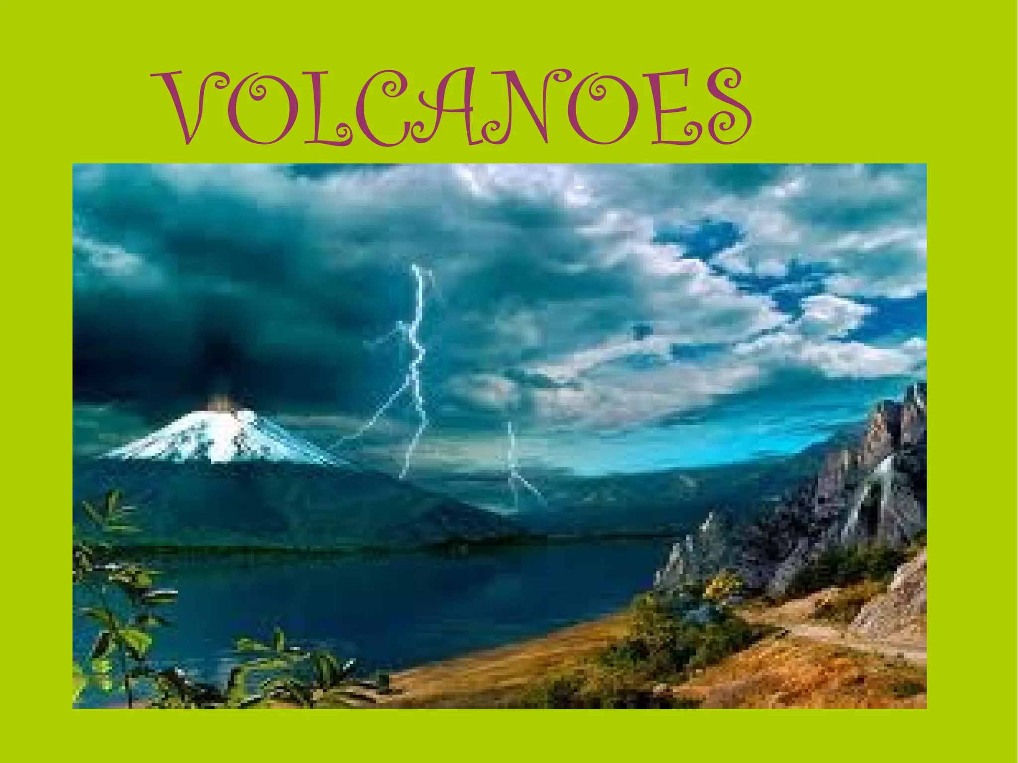 Volcanoes are mountains that sometimes erupt, shooting gas, ash, and burning rock. Inside volcanoes is a deep hole containing hot magma that can push to the surface, forming a crater and flowing as lava. Different types of volcanoes include active volcanoes that can still erupt, dormant volcanoes that are currently sleeping, and extinct volcanoes that cannot erupt again. Some examples of active volcanoes are Kilauea in Hawaii and Arenal in Costa Rica, while Mount Fuji is currently dormant. The eruption of Vesuvius in Italy buried the city of Pompeii under ash.