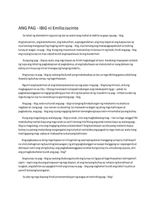 Ang dokumento ay naglalaman ng mga saloobin ni Emilio Jacinto tungkol sa tunay na pag-ibig, na nagsasabi na ang pag-ibig ay walang kapantay at mahalaga sa bawat tao. Binibigyang-diin nito ang halaga ng pag-ibig sa pagkakaisa at kabutihan, pagbabawal sa kasakiman, at pagtulong sa kapwa. Itinatampok din ang pag-ibig bilang susi ng tunay na kapayapaan at kaligayahan sa buhay ng tao.