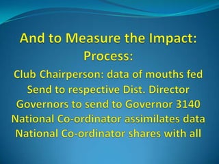 Rotary districts across India, Nepal, Sri Lanka, Bangladesh, and Pakistan will declare a "Rotary Annapoorna Day" to provide grains to orphanages. The event aims to bring focus on malnutrition and hunger in the world. Uniform banners and catch lines will be suggested to make the event impactful and bring attention to this important issue.