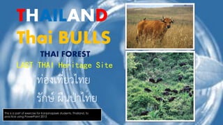 THAI Heritage Site ท่องเที่ยวไทย รักษ์ ผืนป่าไทย This is a part of exercise for Kanjanapisek students, Thailand, to practice using PowerPoint 2013